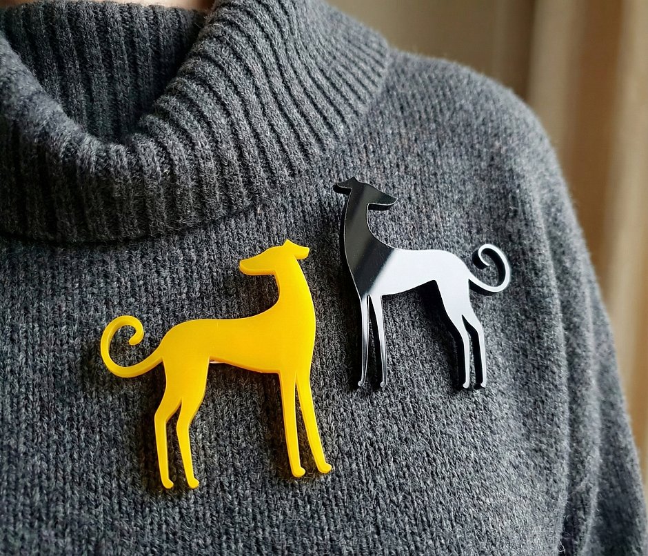 Bezpečný pelíšek – když zrovna chrtík nezdobí váš kabát nebo šaty, bude mu nejlépe v krabičce nebo v oddělené šperkovnici. Plexisklo (zejména to zrcadlové) je citlivé a mohlo by se poškrábat při kontaktu s ostatními šperky.